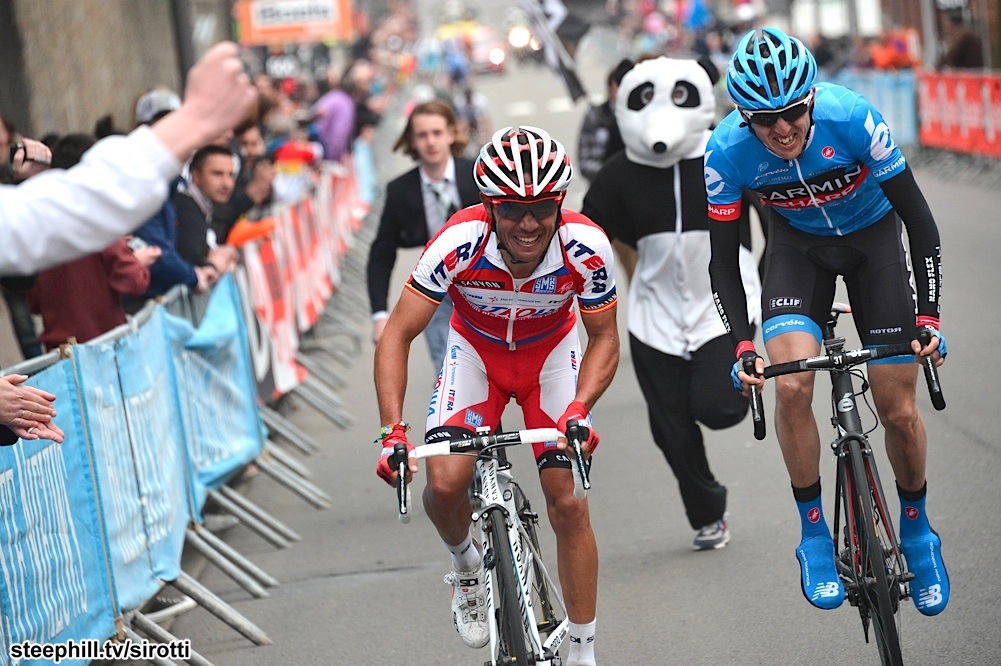 @Côte de Colonster(倒數第二個坡), Ryder Hesjedal (Garmin-Sharp) 強而有力的攻擊出去